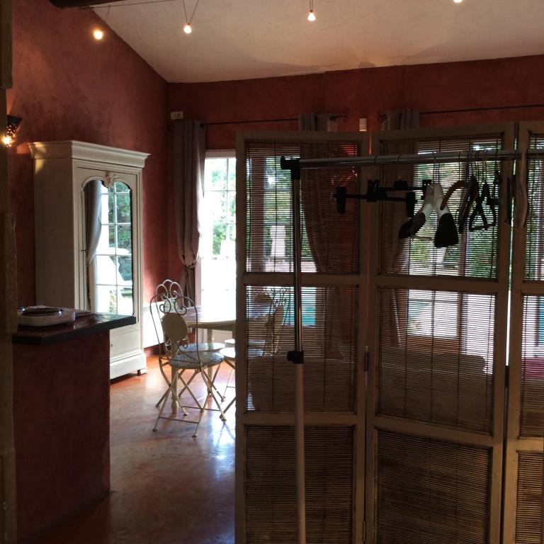 Gîte climatisé d'environ 33 m2 pour 2 / 4 personnes (idéal pour 2 - possible pour 3/4 sans supplément) - coin chambre avec lit en 180 (king bed) et tables de chevet - coin salon avec table basse et TV + canapé-lit 2 personnes - coin cuisine avec plaques chauffantes à induction, frigo, micro-ondes, cafetière, bouilloire, toaster, presse-agrumes... - salle de bain avec baignoire/douche ornée de mosaïques artisanales - armoire ancienne - coffre-fort - ...